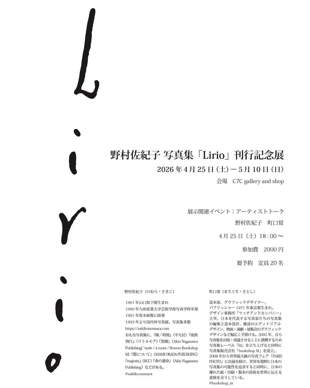 野村佐紀子 写真集「Lirio」トークイベントチケット